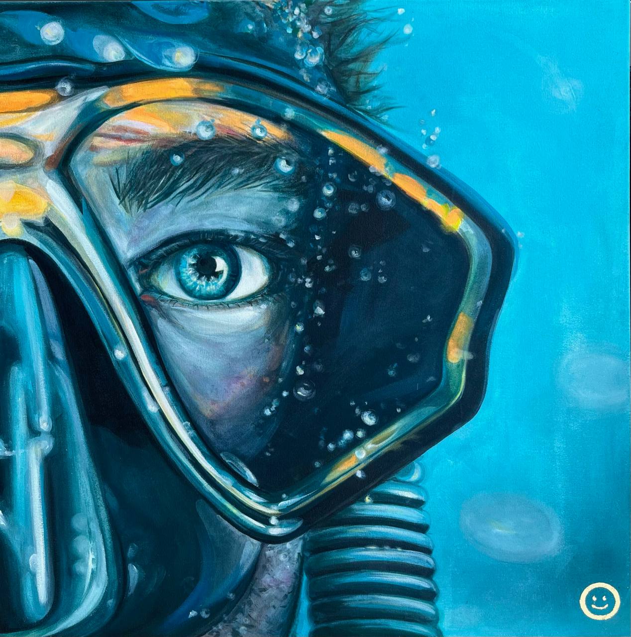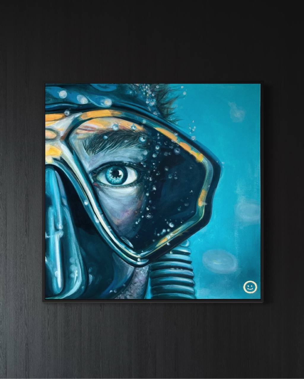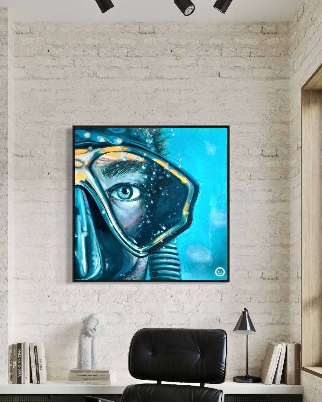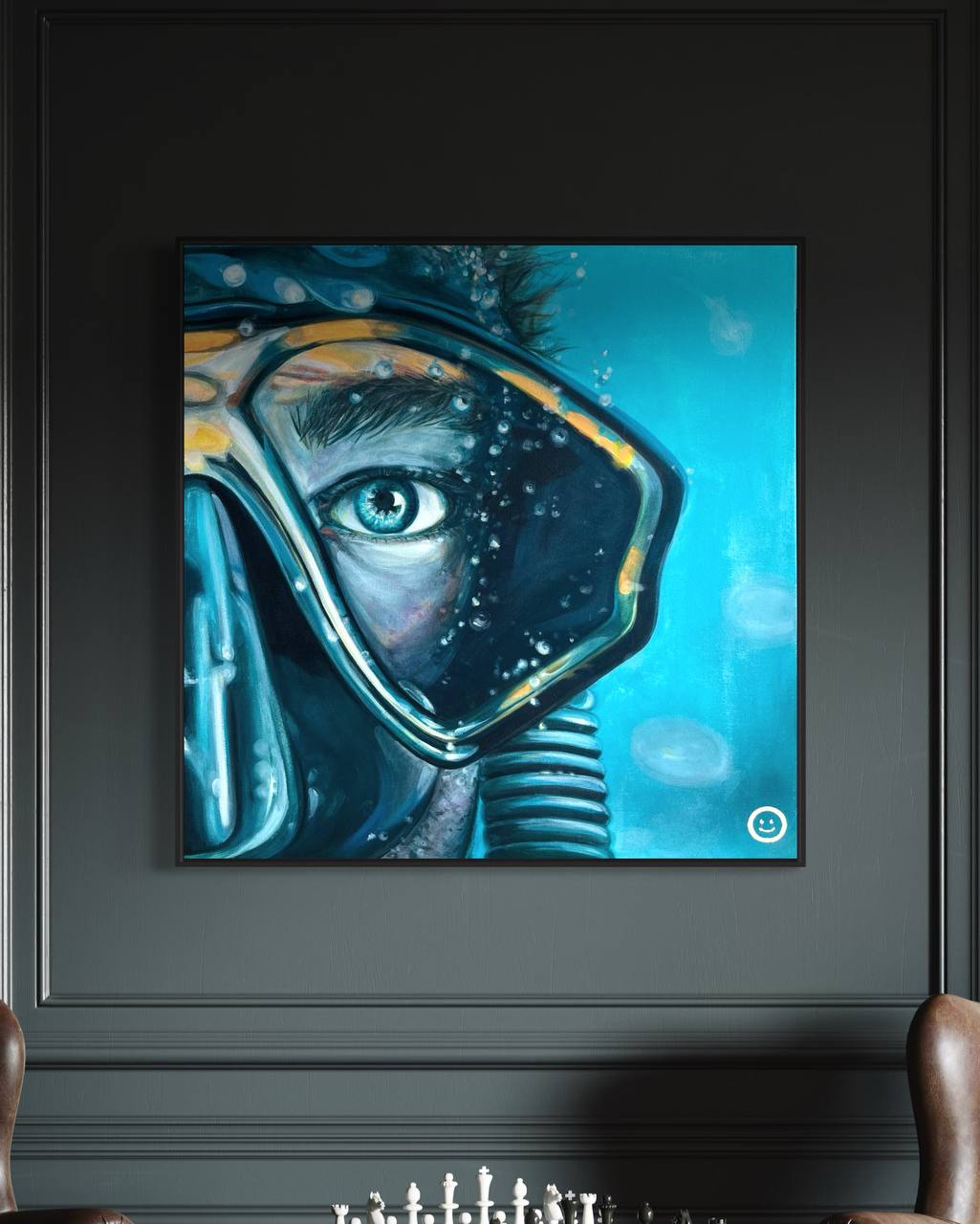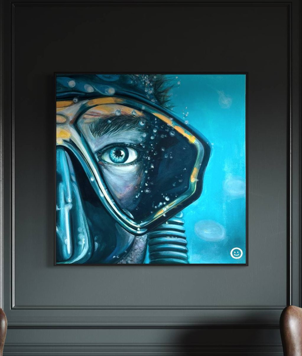 „DIE TIEFE IN UNS“ ist ein einzigartiges Acrylgemälde (100×100 cm) auf roher Leinwand, das einen Taucher in einer friedlichen, abstrakten Unterwasserlandschaft zeigt. Dieses Porträt fängt einen Moment der Einheit mit der Unterwasserwelt ein, in dem jeder Atemzug durch die Maske das Leben symbolisiert und der Blick durch das Glas zum Spiegel der Seele wird. Die Tiefe, die den Menschen umgibt und in ihm wohnt, verschmilzt miteinander und lädt den Betrachter dazu ein, über das eigene Wesen, die Zerbrechlichkeit und die Unendlichkeit der inneren Welt nachzudenken. Das Gemälde erinnert uns daran, die Oberfläche zu überwinden und Schönheit selbst an den unerwartetsten Orten zu entdecken.
